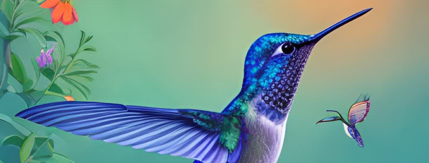 In gardens lush with blossoms bright, Amidst the nectar’s sweet delight, A tiny bird with wings so quick, Comes flitting by, a humming stick.